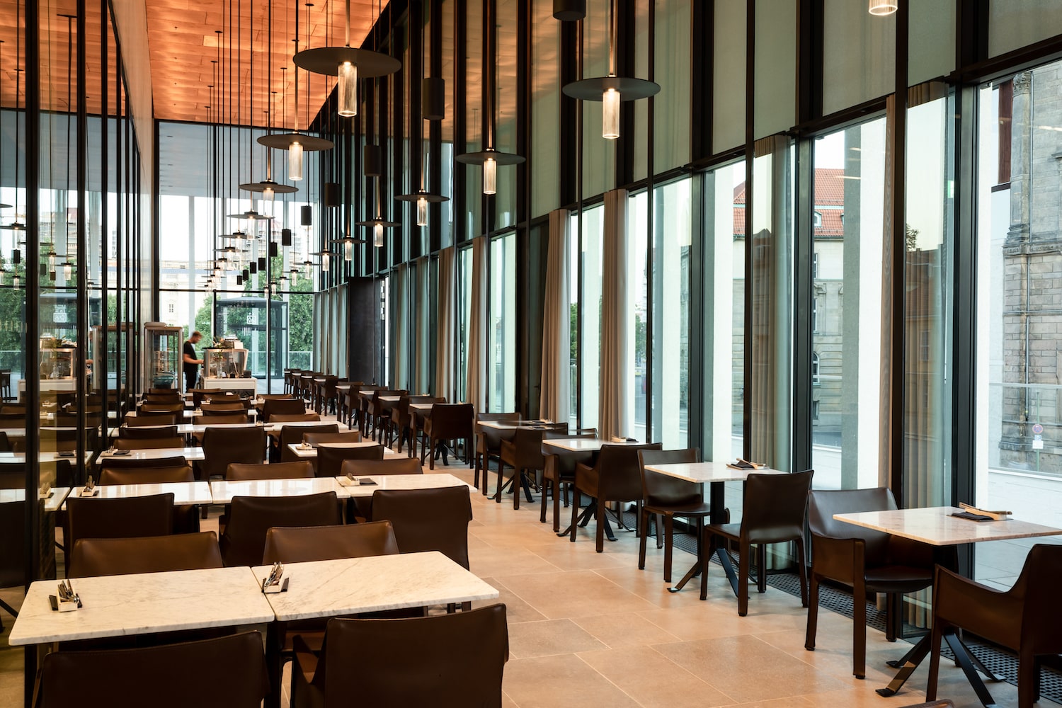 Das CU29 befindet sich direkt in der James-Simon Galerie auf der Museumsinsel in Berlin Mitte und ist somit aufgrund seiner zentralen Lage ein stark frequentierter Veranstaltungsort. Umgeben von Kunst und Kultur können Sie Ihre individuelle Veranstaltung am Abend genießen und Ihren Blick von der Terrasse aus über die Spree schweifen lassen. Marmortische, Beton & Kupferelemente dominieren das moderne Ambiente und schaffen eine einzigartige Atmosphäre. Ebenso ist eine Museumsführung während Ihres Events umsetzbar.